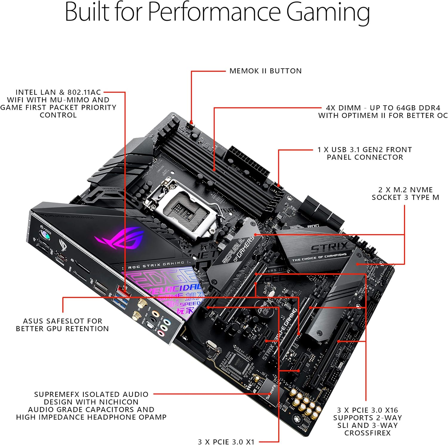 * 10th Gen Intel® Core™i9/i7 CPUs support 2933/2800/2666/2400/2133 natively, Refer to www.asus.com for the Memory QVL (Qualified Vendors Lists).