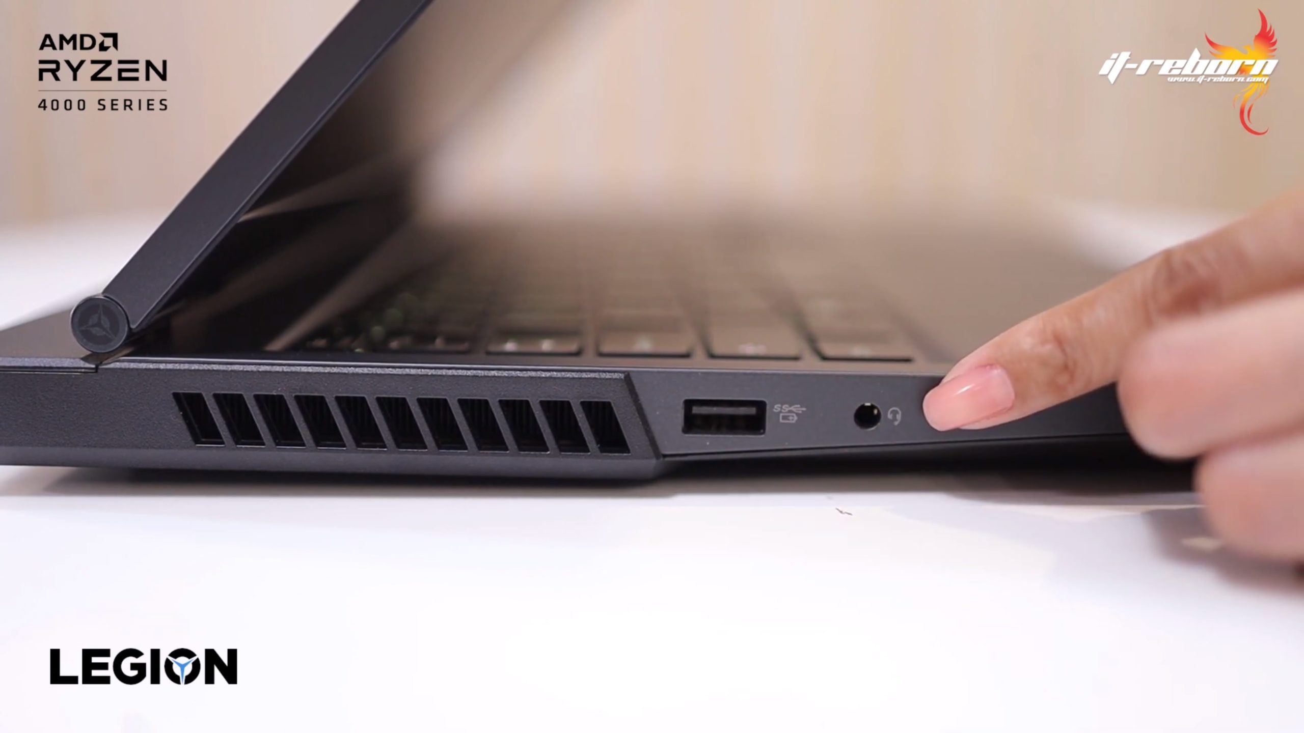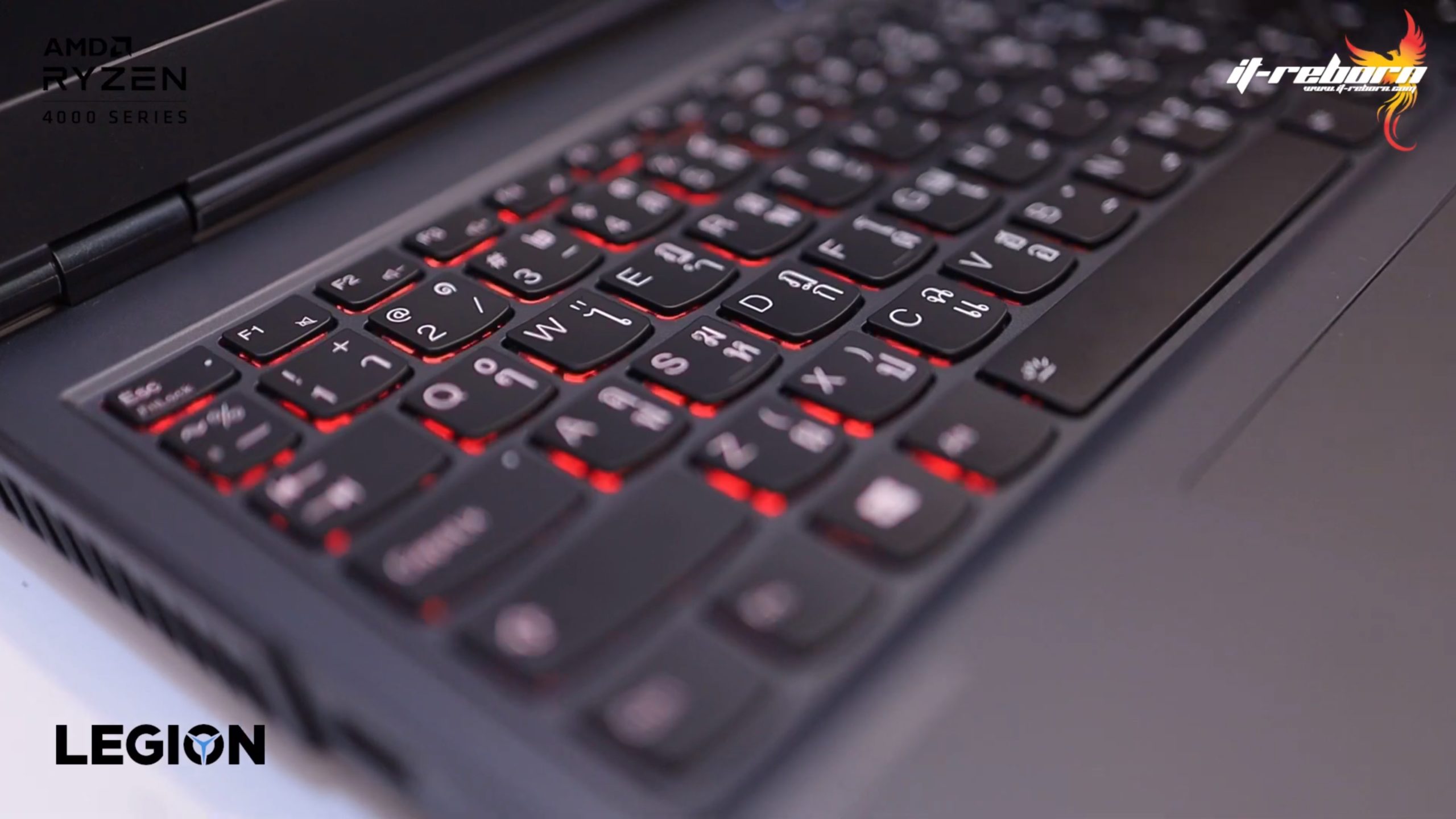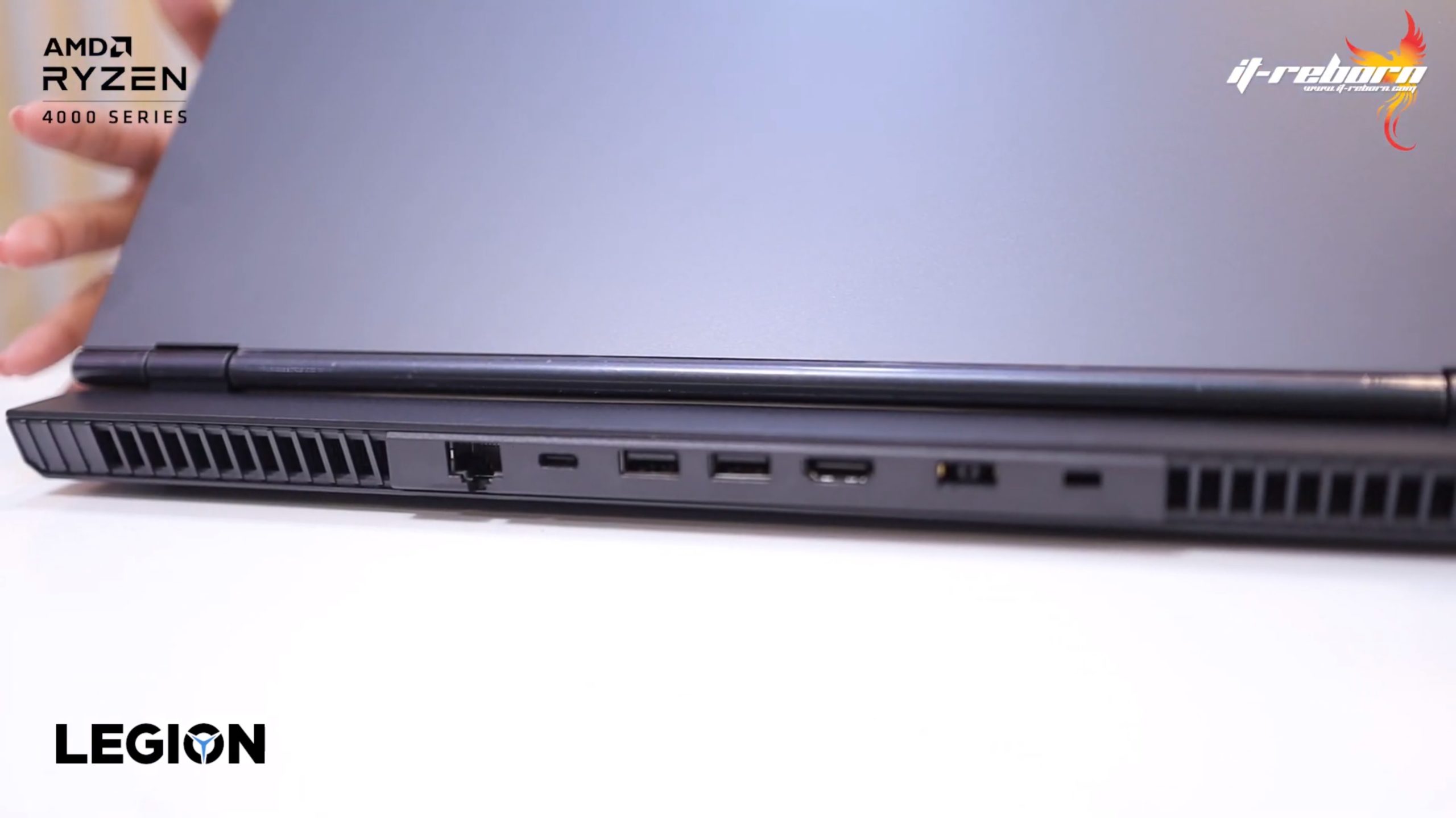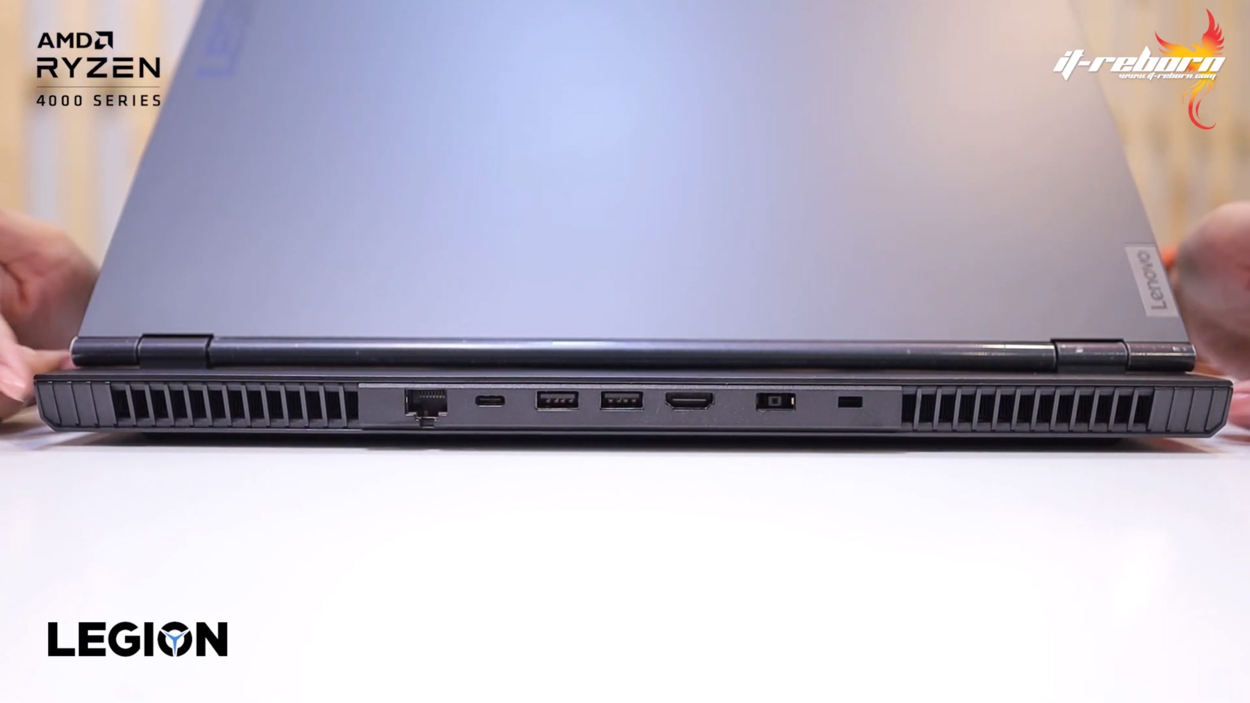ส่วนโลโก้ แบรนอื่นอาจจะไว้ที่ตรงกลาง แต่สำหรับ LENOVO เลือกที่จะย้ายมาไว้ที่ด้านข้าง เขียนว่า LEGION มาเป็นสีรุ้ง และอีกฝั่งก็จะมีโลโก้ LENOVO ที่ใช้เป็น aluminium page