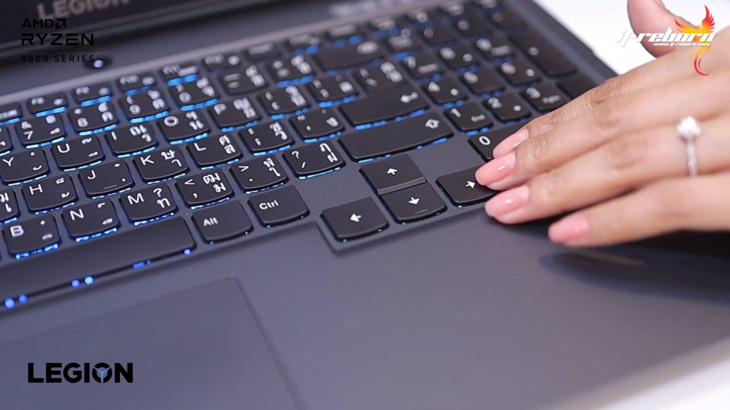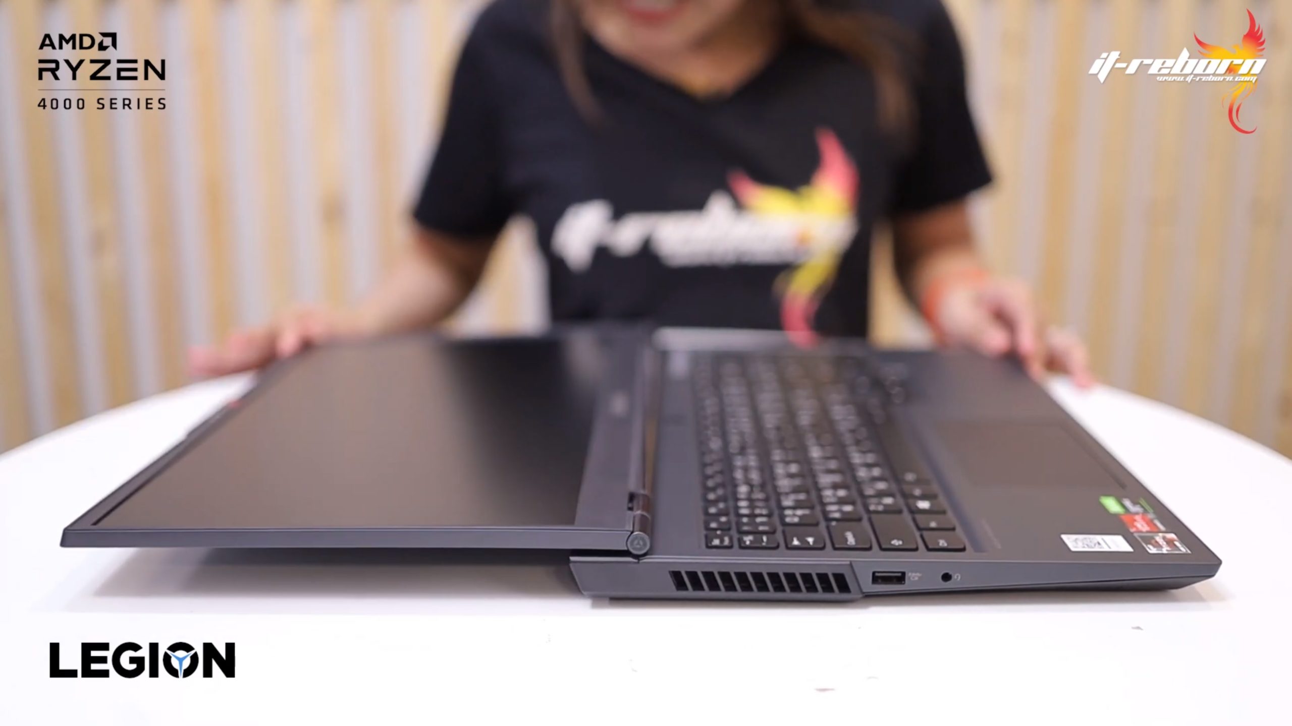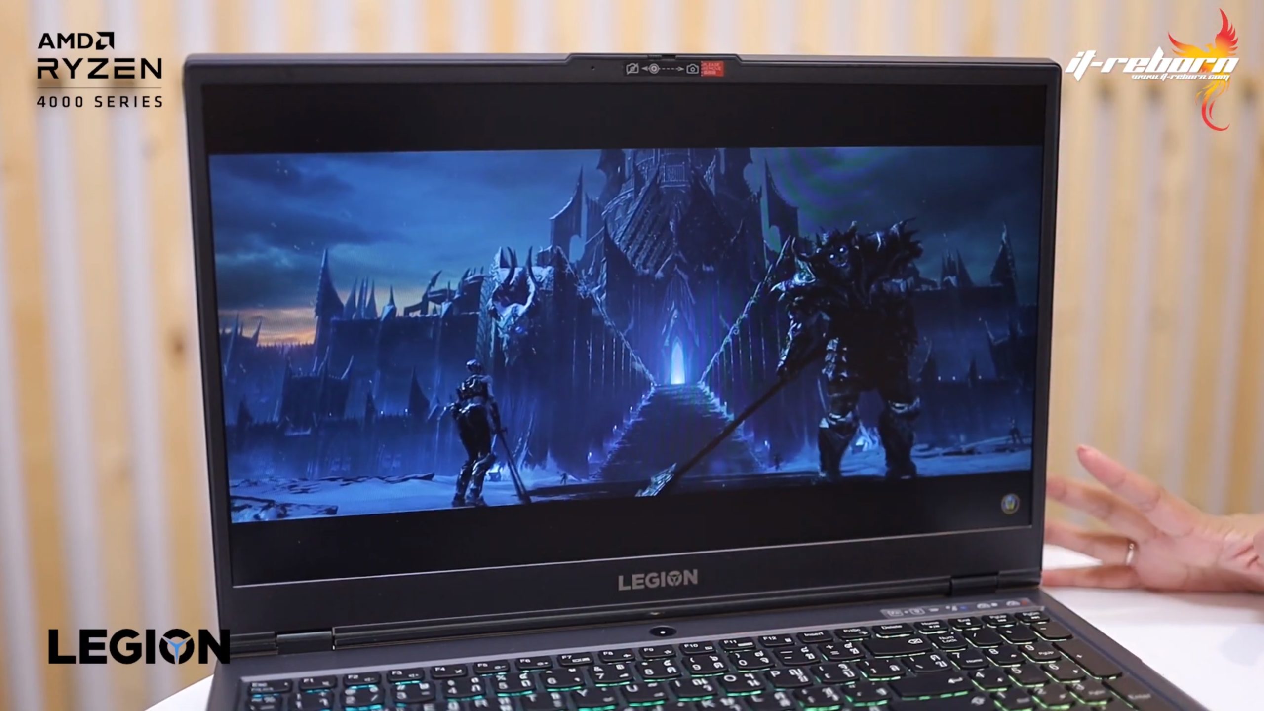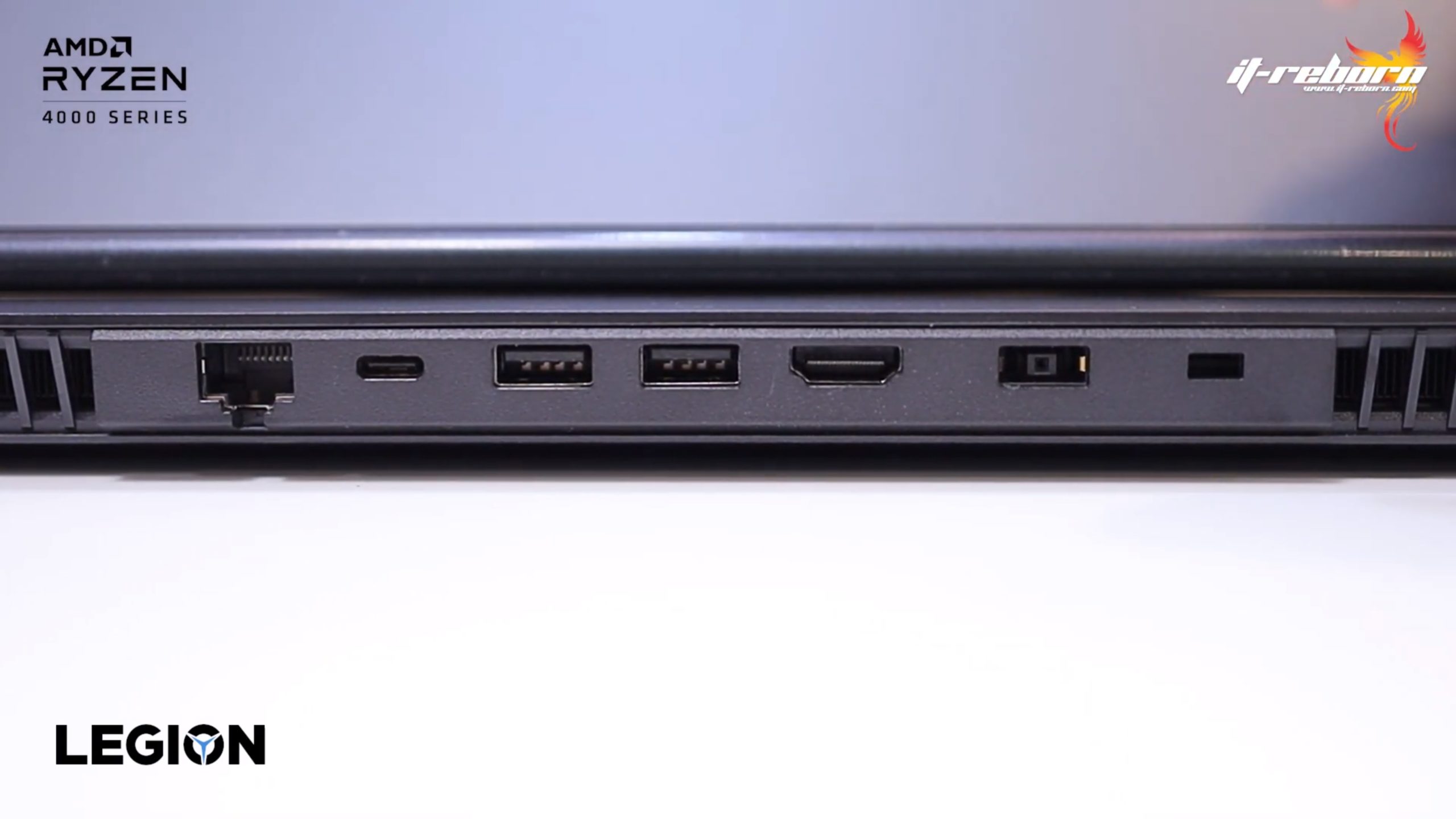 ส่วนโลโก้ แบรนอื่นอาจจะไว้ที่ตรงกลาง แต่สำหรับ LENOVO เลือกที่จะย้ายมาไว้ที่ด้านข้าง เขียนว่า LEGION มาเป็นสีรุ้ง และอีกฝั่งก็จะมีโลโก้ LENOVO ที่ใช้เป็น aluminium page