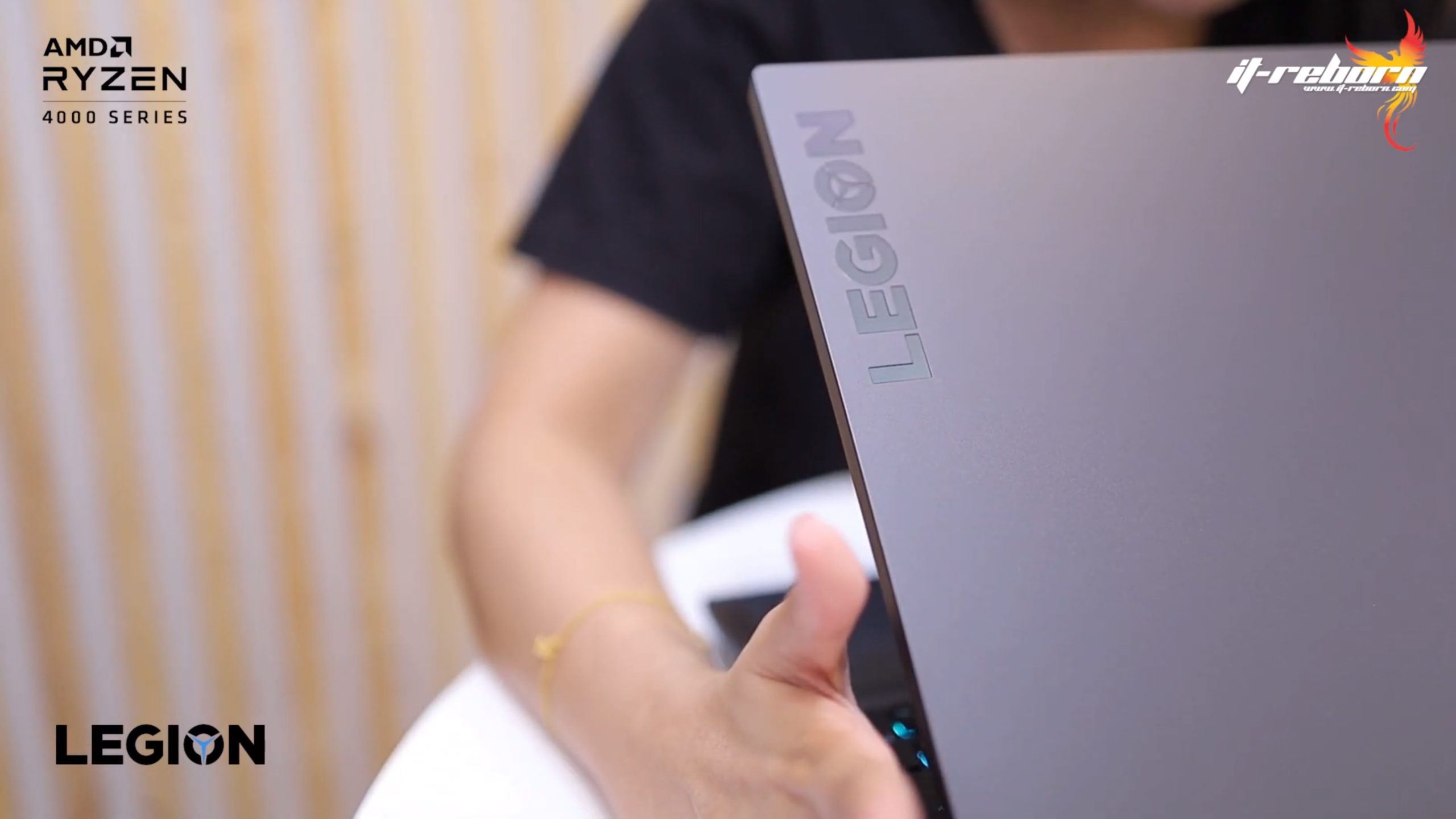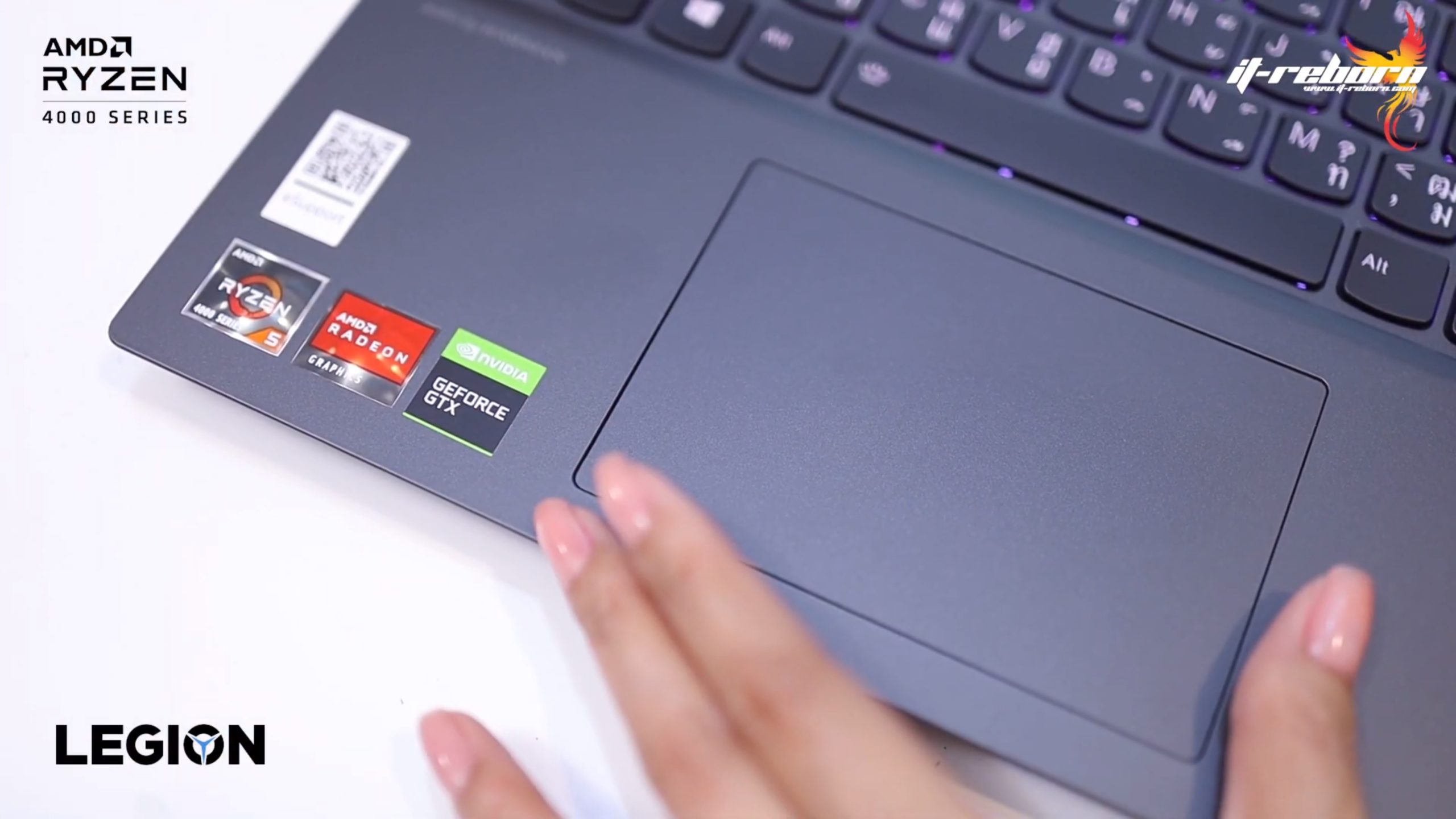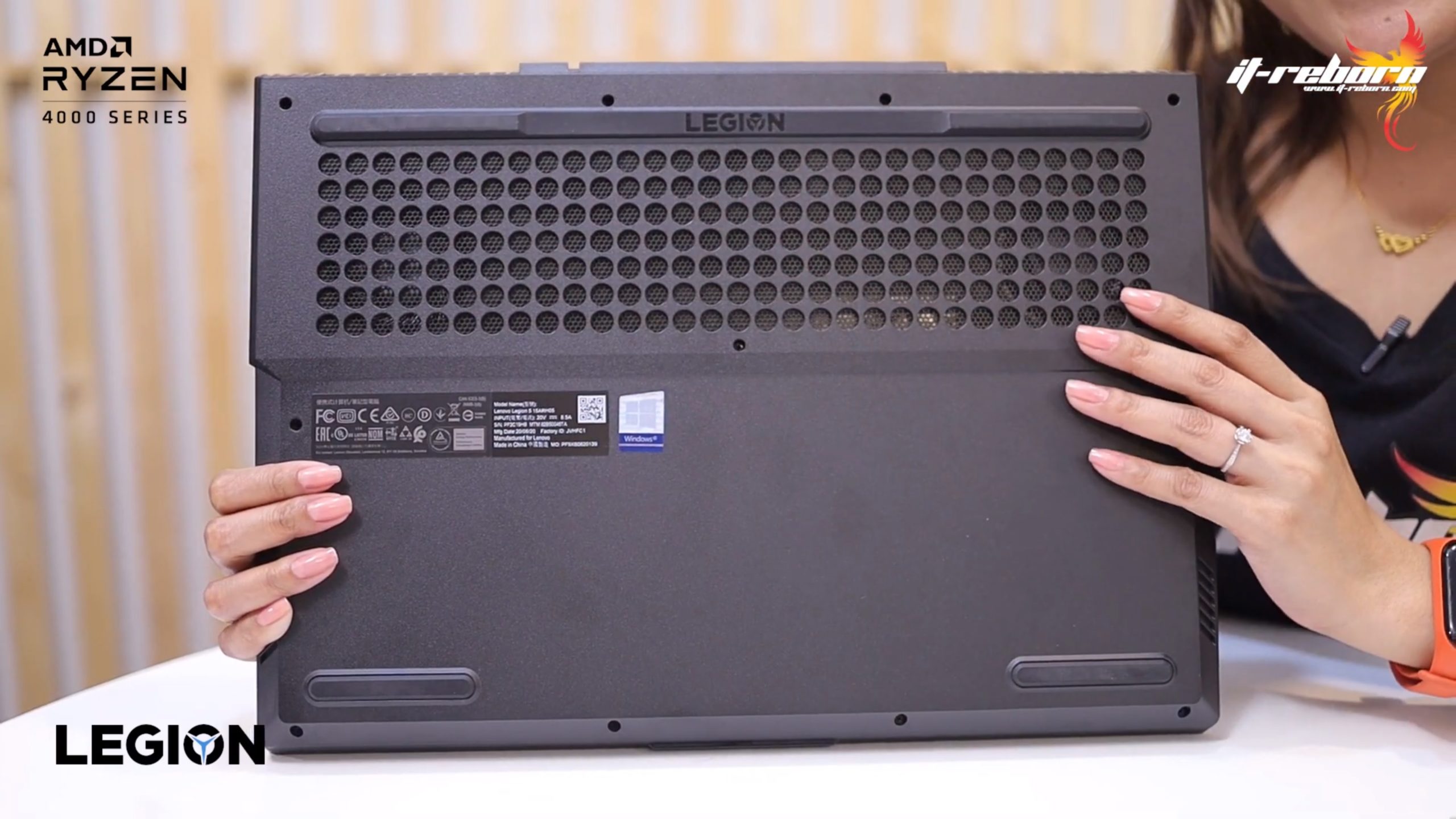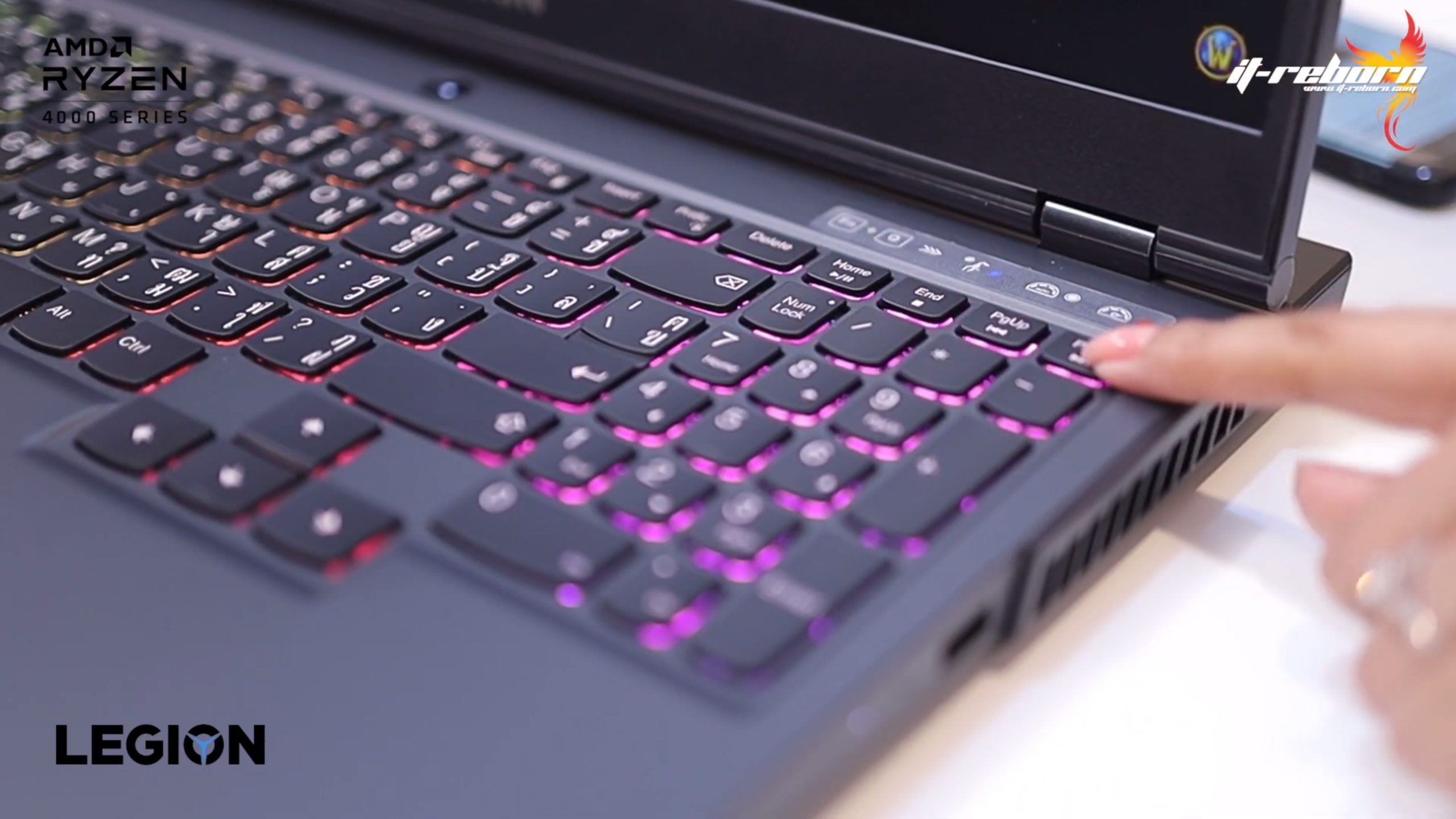 ส่วนโลโก้ แบรนอื่นอาจจะไว้ที่ตรงกลาง แต่สำหรับ LENOVO เลือกที่จะย้ายมาไว้ที่ด้านข้าง เขียนว่า LEGION มาเป็นสีรุ้ง และอีกฝั่งก็จะมีโลโก้ LENOVO ที่ใช้เป็น aluminium page