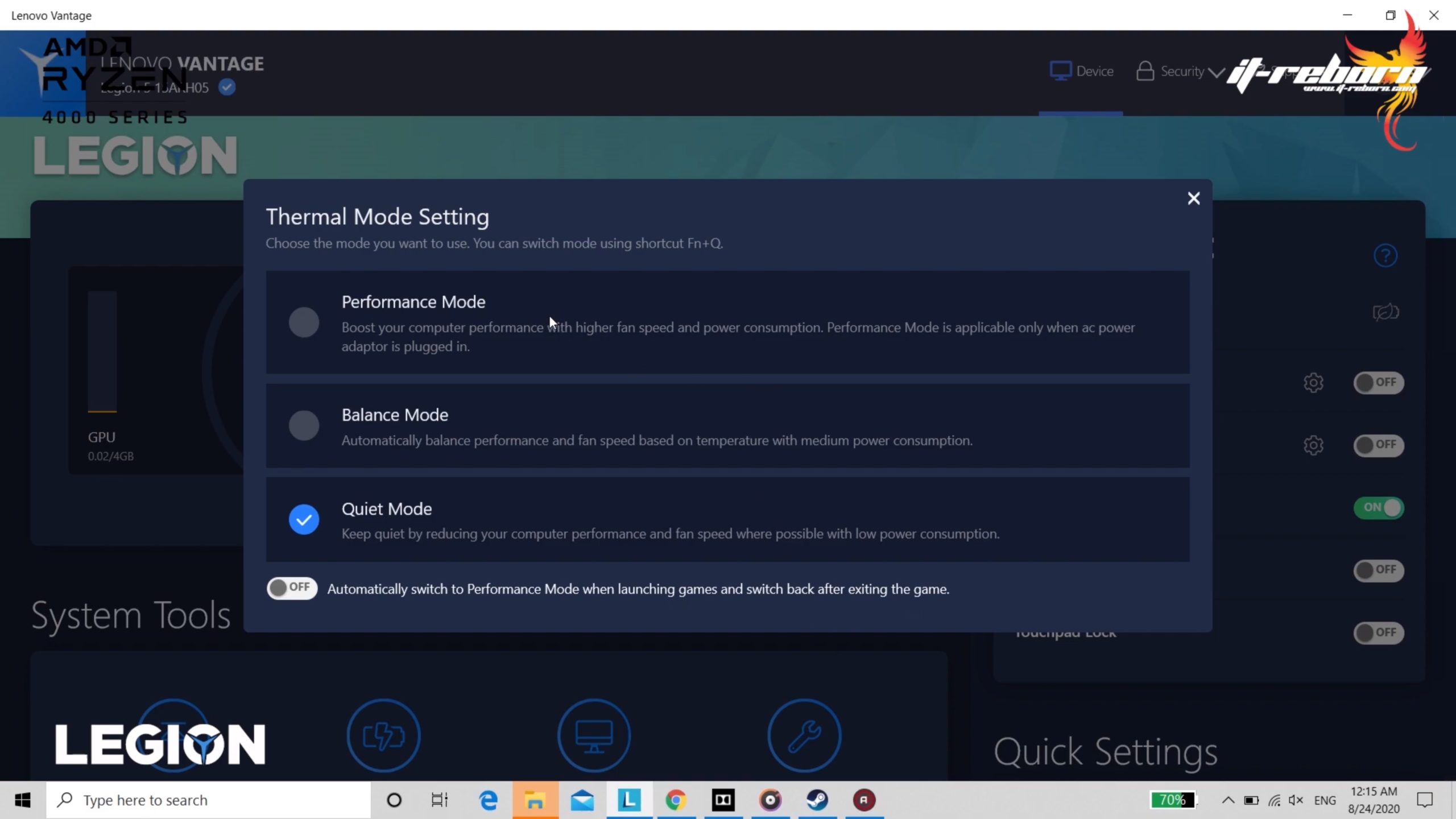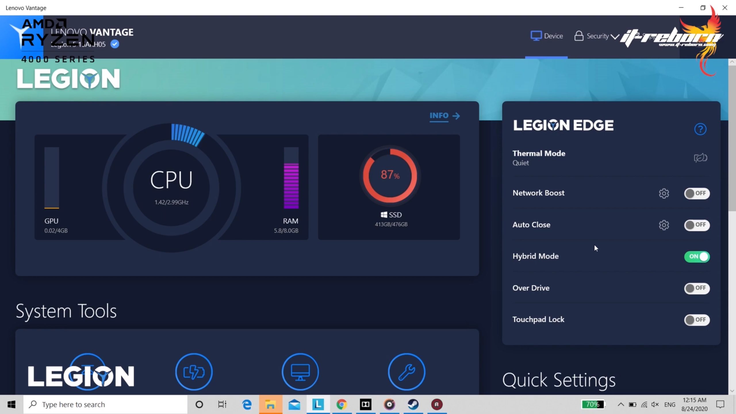 LENOVO LEGION 5 ยังมาพร้อมกับซอฟต์แวร์ที่ชื่อว่า Lenovo Vantage ที่เอาไว้สำหรับการปรับตั้งค่าเครื่องโดยเฉพาะ
